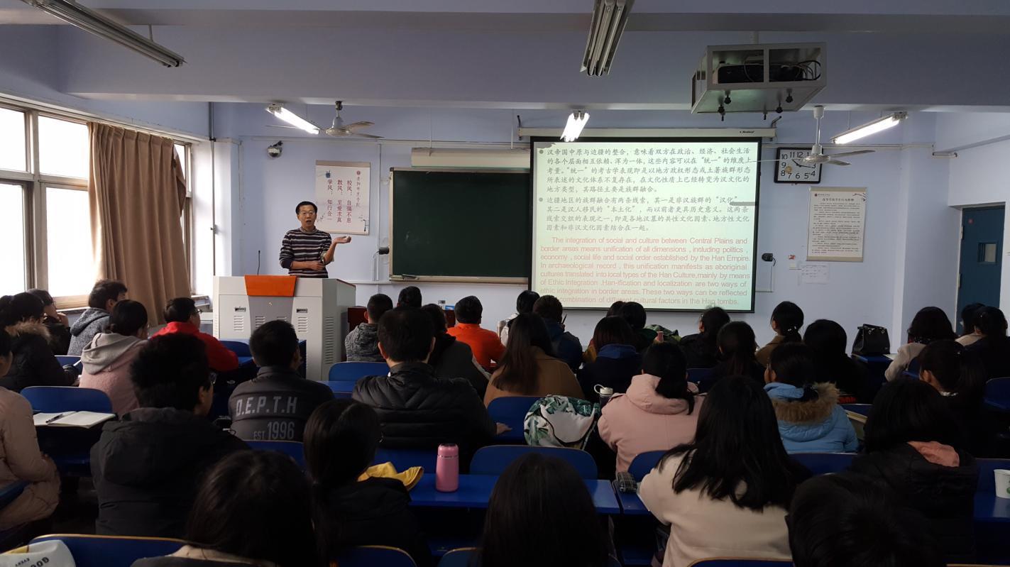 11月23日上午,中山大学博士生导师郑君雷教授来我院讲学。在和展B楼205教室,郑君雷作了一场题为“汉帝国边远地区汉文化的形成”的专题报告,历史与文博学院部分师生聆听了报告。报告会由学院副院长刘朴兵教授主持。
