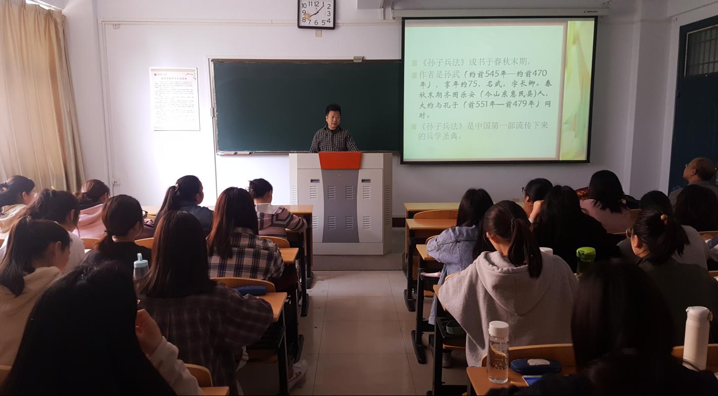 2019年4月17日下午,广西民族师范学院历史文化与旅游学院李桂生教授来我校讲学。在和鸣楼B212教室,李桂生作了一场题为“孙子兵法与智慧人生”的专题报告。报告会由学院副院长刘朴兵教授主持,历史与文博学院部分师生聆听了报告。