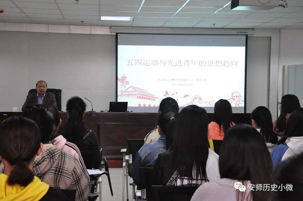 100年前爆发的五四运动,是一场以先进青年知识分子为先锋、广大人民群众参加的彻底反帝反封建的伟大爱国革命运动,它开辟了中国历史的新纪元。在五四运动100周年到来之际,4月29日下午在文博北楼407报告厅,我院党委书记常全喜作了一场题为“五四运动与先进青年的思想趋向”的专题报告,重温前人这段奋斗探索的历史。报告会由学院分团委副书记常阳主持,我院团员青年代表聆听了报告。