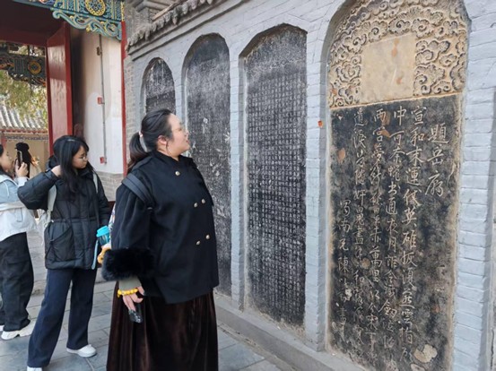 考察首站为羑里城遗址,师生一同瞻仰周文王铜塑,漫步于演易台、文王庙等建筑祠殿之间,仿佛跨越千年与古人对话,每一处古迹都在诉说着先贤的坚韧与哲思。这不仅是一次历史溯源,更是一场精神洗礼,让传统文化的力量直抵人心。随后,师生们转赴岳飞庙,通过游览庙宇内陈列的雕塑、画像与碑刻,同学们结合以往对岳飞生平事迹的了解,更直观地感受到了他“精忠报国”的英雄形象。而这份赤诚爱国、忠贞不屈的精神,也回荡在每个人心中,成为永不褪色的民族印记。