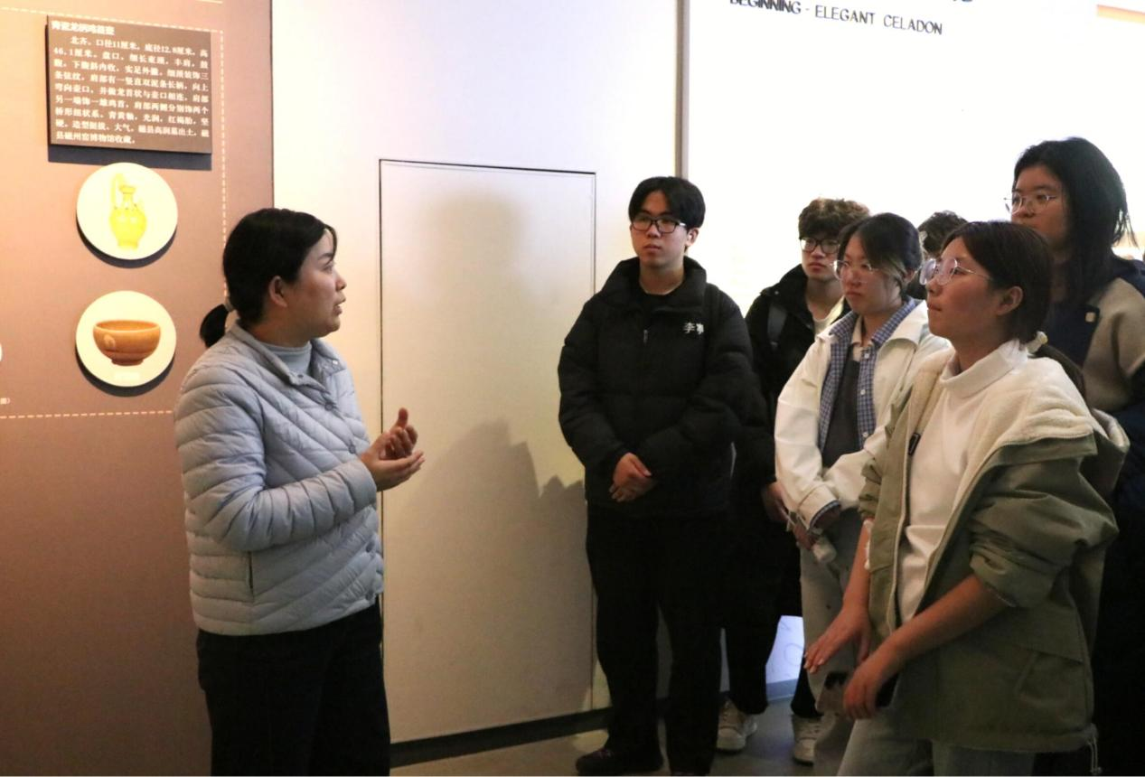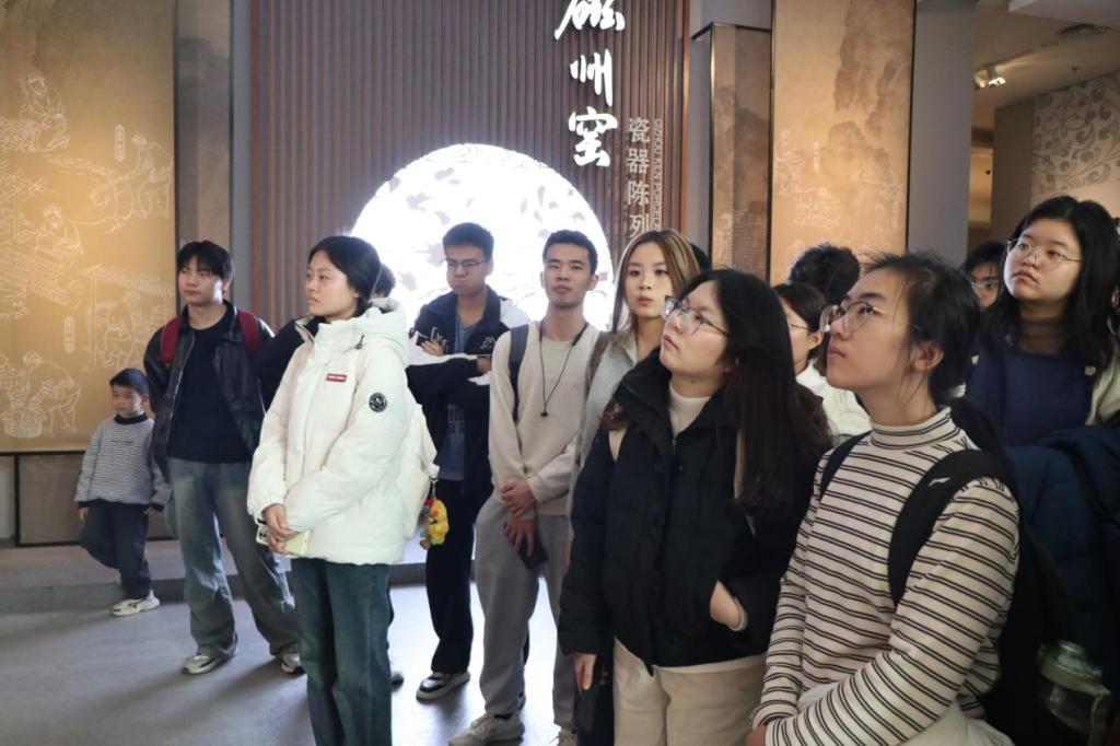 考察首站聚焦邯郸市博物馆。馆内展陈串联起邯郸的千年脉络:从战国赵王城青铜礼器,到唐宋磁州窑瓷器,文物群像勾勒出数代社会风貌。期间,明朝方老师重点为同学们讲解了磁州窑的艺术特色与工艺成就,让同学们对这一民间窑系的历史价值有了更具象的理解。随后,师生前往丛台公园进行实地探访。登上丛台,赵武灵王阅兵旧址全景呈现。砖石与台阶保存有清晰的历史遗迹,使人直观感受到昔日阅兵场面的庄重与恢弘,历史从抽象的文字记载转变为具象的现实感知。最后一站为赵王城遗址。通过尚可辨识的宫殿基址与西城门遗迹,同学们得以切身感受赵国都城昔日的规模与气象。