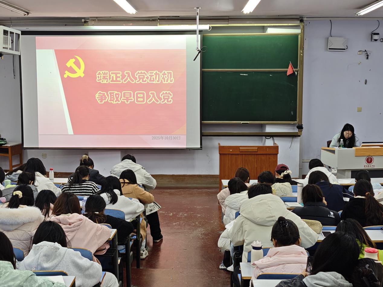 为端正入党动机,强化党性修养,2025年10月30日,历史与文博学院于和鸣阶梯1201开展“端正入党动机,争取早日入党” 主题党课。党课由历史与文博学院2024级辅导员李春辉主讲,第51期入党积极分子参加。