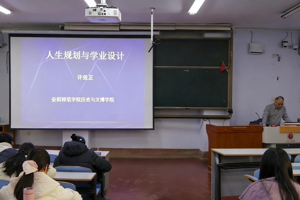 为帮助学生明确人生规划,把握专业发展方向,2025年11月28日,历史与文博学院于和鸣阶梯1201开展人生规划与学业设计专题讲座,本次讲座由历史与文博学院教授许效正主讲,2025级全体学生参与。