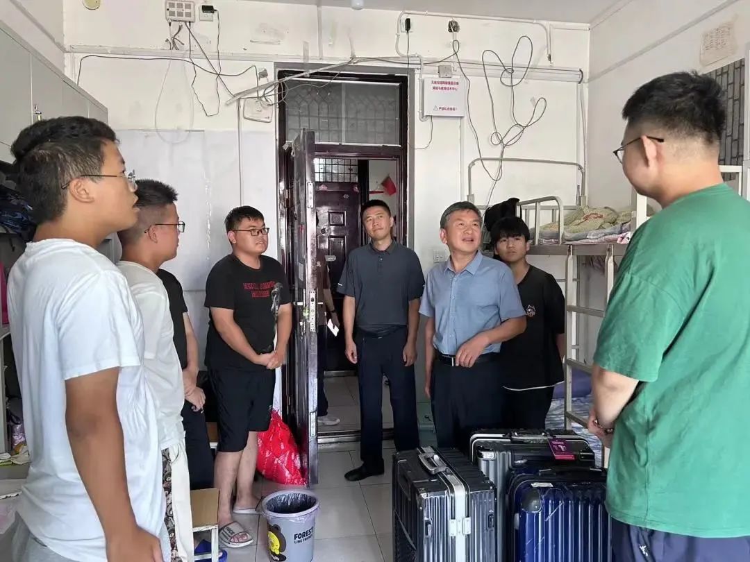 在走访学生宿舍过程中,学院领导老师与新生亲切交谈,了解学生的入住情况和到校感受。院长郭旭东表示同学们要尽快适应大学生活,做好规划,珍惜大学时光。徐永杰书记细心叮嘱同学们注意人身财产安全,提高安全防范意识,遇到困难要第一时间向老师反映。最后,辅导员老师鼓励大家及时调整状态,以昂扬的精神风貌和端正踏实的态度开启大学新篇章。