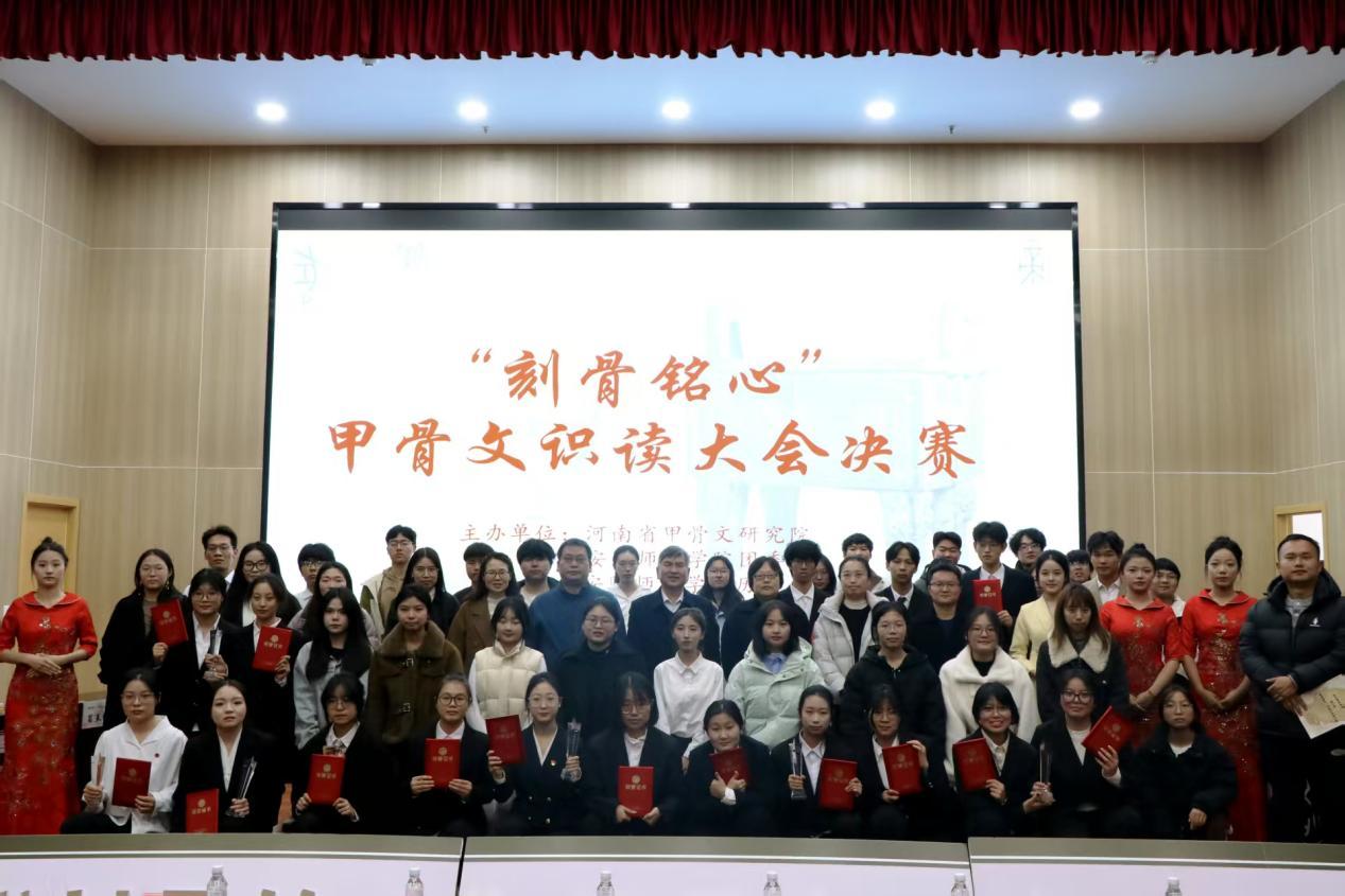 2025年11月20日,安阳师范学院第二届“刻骨铭心”甲骨文识读大赛于逸夫楼一楼报告厅正式举行,比赛由河南省甲骨文研究院、安阳师范学院团委及历史与文博学院共同主办。历史与文博学院党委书记徐永杰、院长李彦雄、院党委副书记邓钠、副院长张秋芳及教师代表仇利萍、牛晓旭、袁琳出席活动。