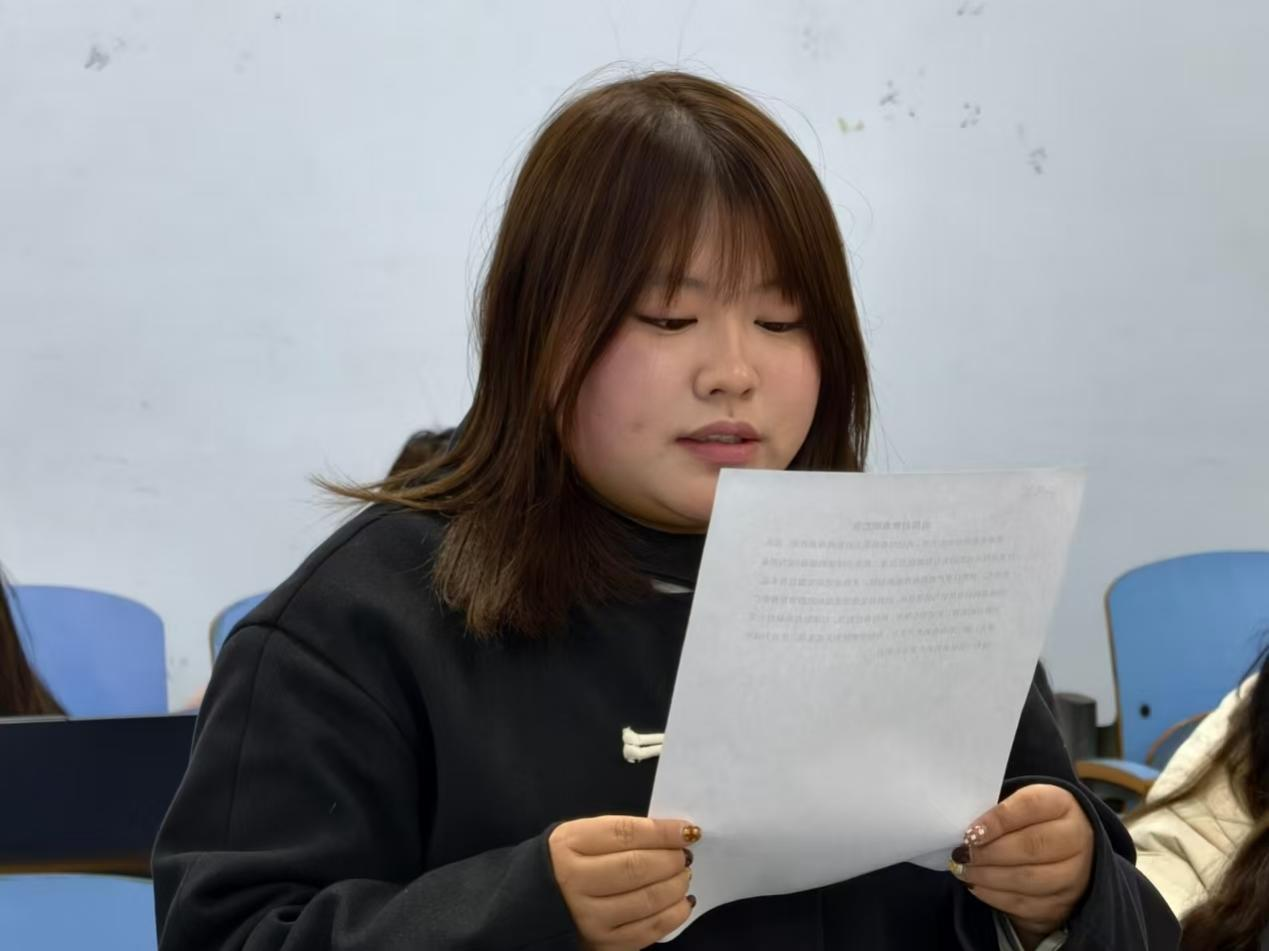 2025年11月28日,历史与文博学院学生第二党支部于和鸣楼A105教室召开预备党员接收大会。大会由学生第二党支部书记郭瑞文同志主持,其中支部应到党员17人,实到16人,焦汉林同志请假,大会讨论接收杨敏、李亚培、李探源、杨若萱、王梦鑫、孔晗梦同志为中共预备党员的问题。