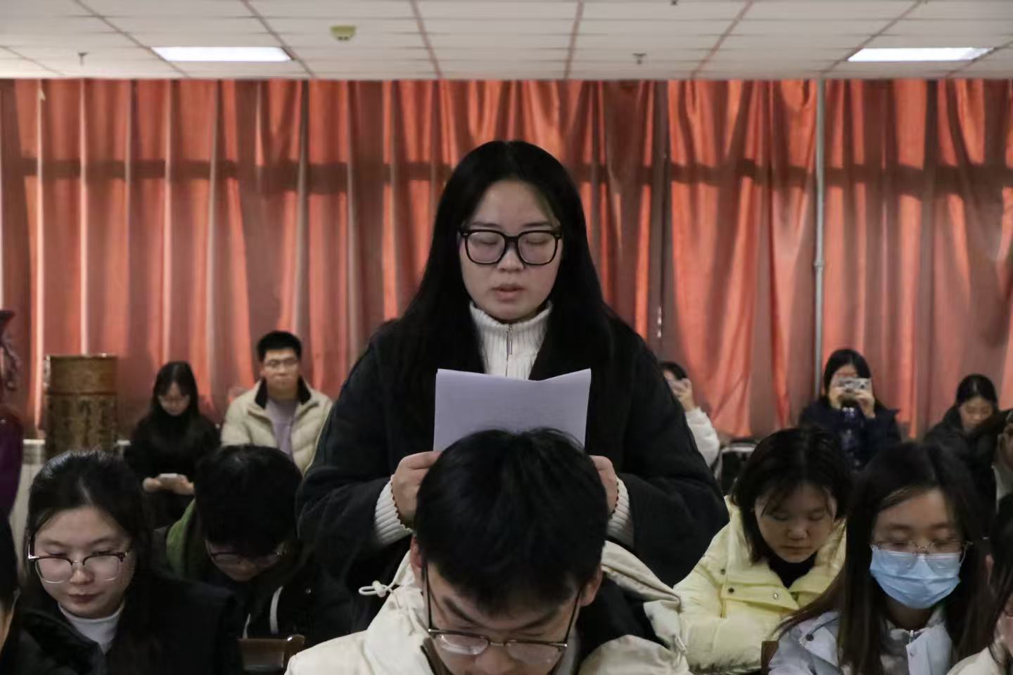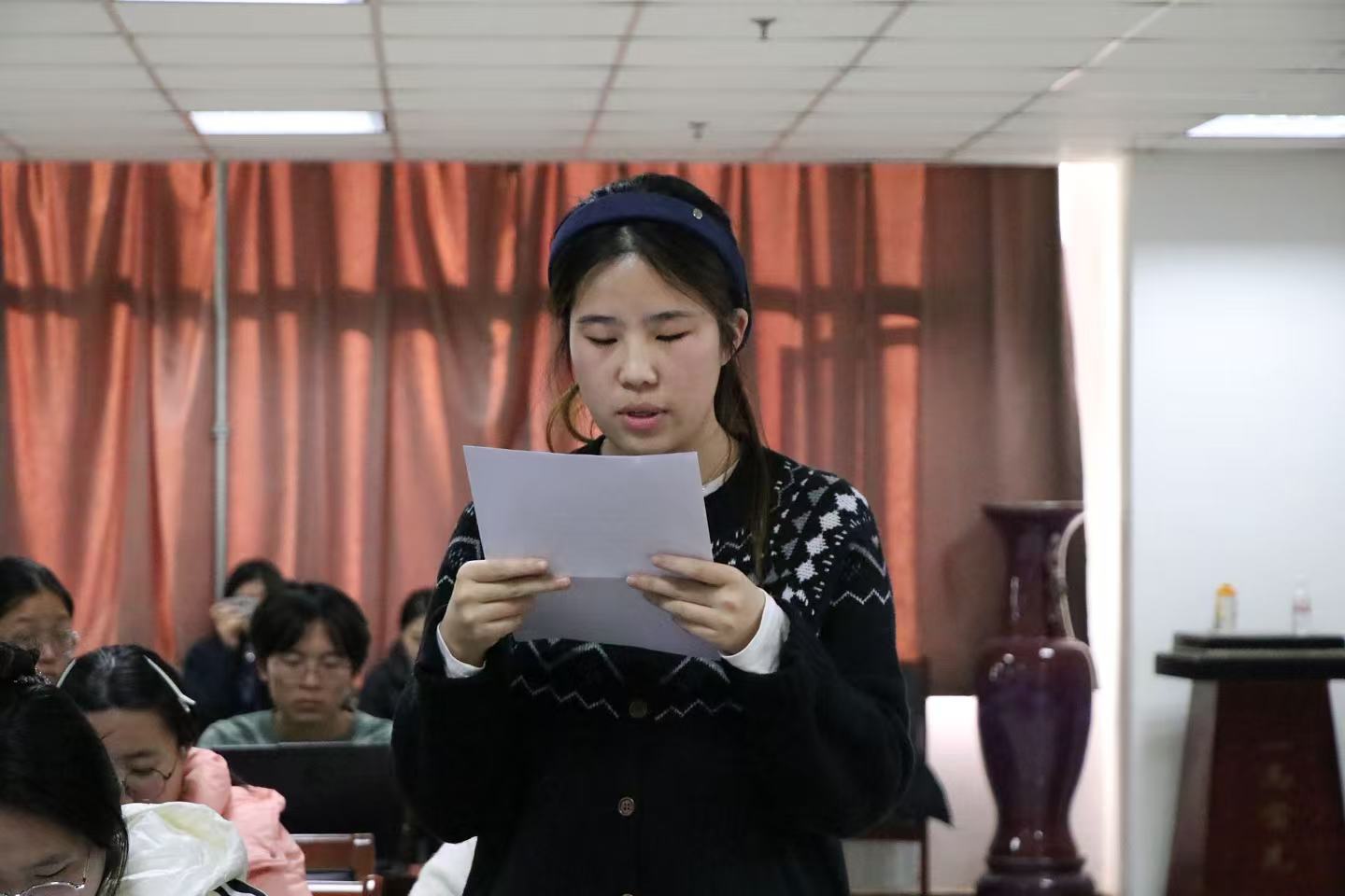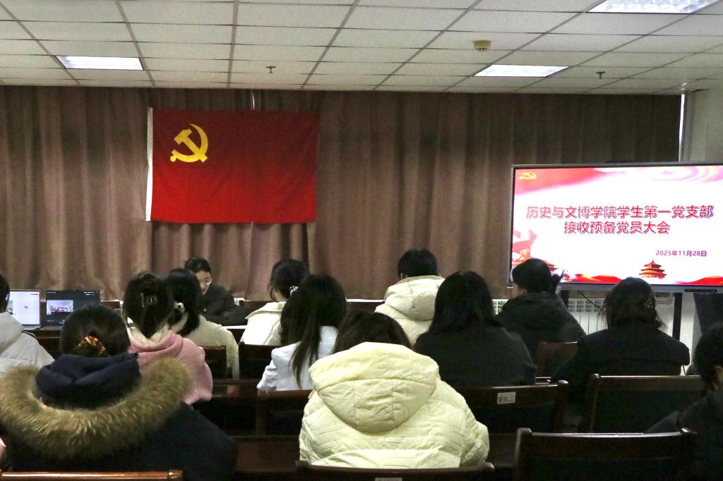 2025年11月28日,历史与文博学院学生第一党支部于文博北楼515会议室召开预备党员接收大会。大会由历史与文博学院学生第一党支部副书记雷宁同志主持,支部实到党员18名,其中正式党员6名,孔令晴同志请假。会议主要讨论关于谢婉彤、张淇、王俊、程子桓、任文静五名发展对象的入党问题。
